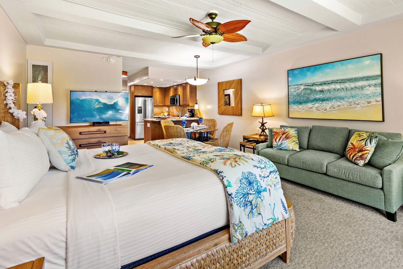 Our spacious studios (523 to 542 square feet) sleep two and offer four room types: Garden View, Premium Garden View, Ocean View, and Premium Ocean View.