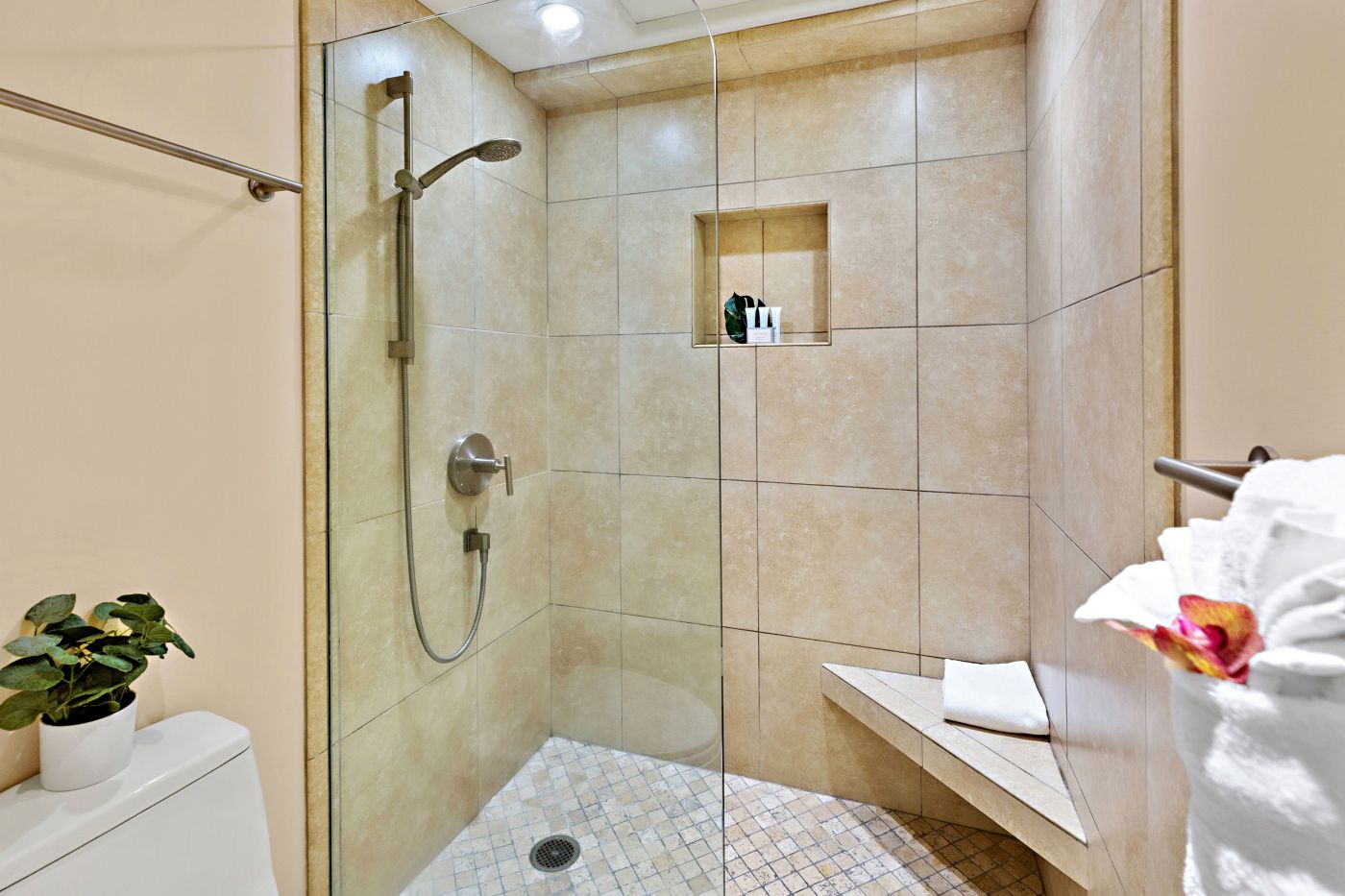 Stay active in our 24/7 fitness center, featuring cardio equipment, strength training options, and dedicated space to stretch and recharge. After your workout, cool off in the swimming pool or simply relax on your private lanai and take in the ocean breeze.